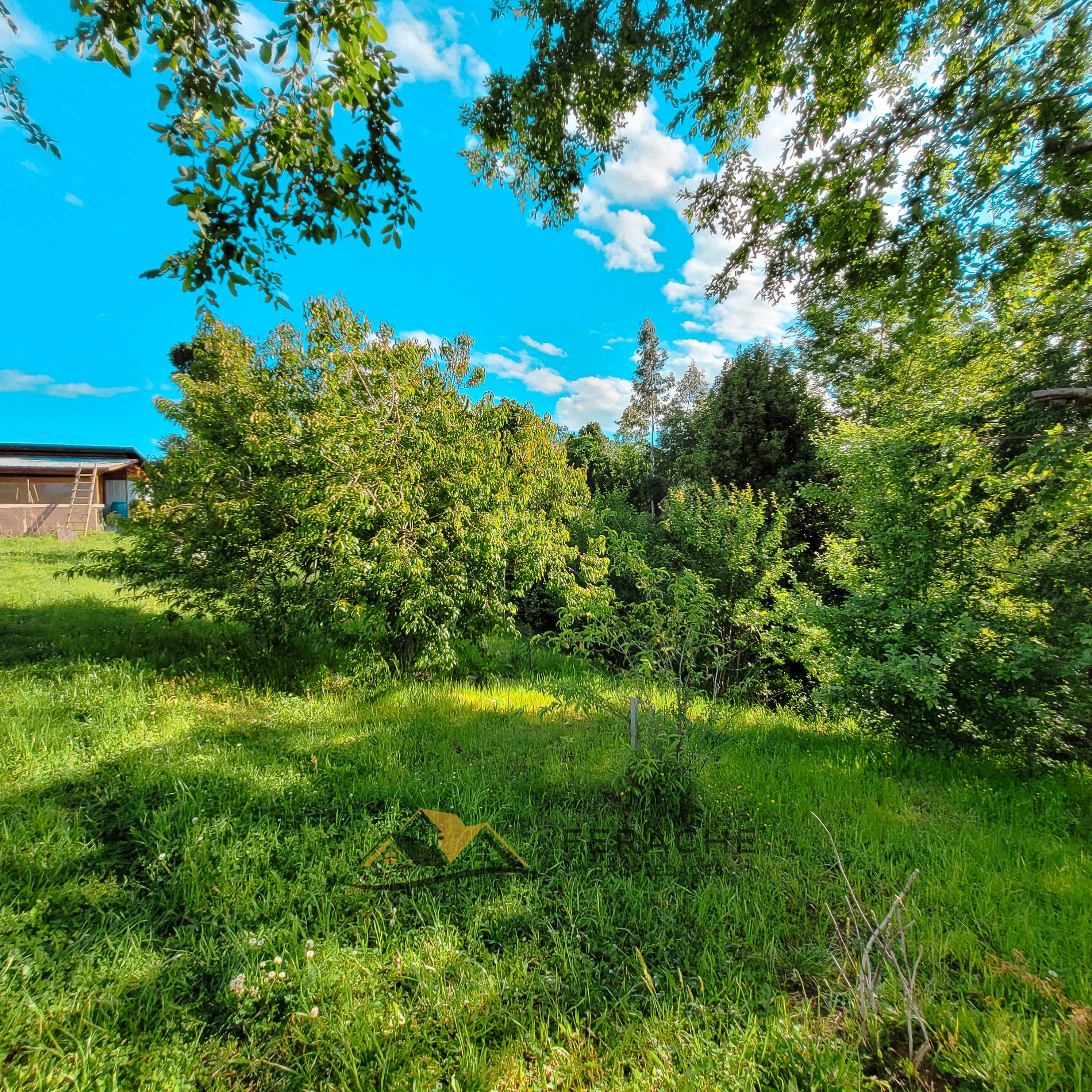 - Zona con árboles frutales y un entorno natural.